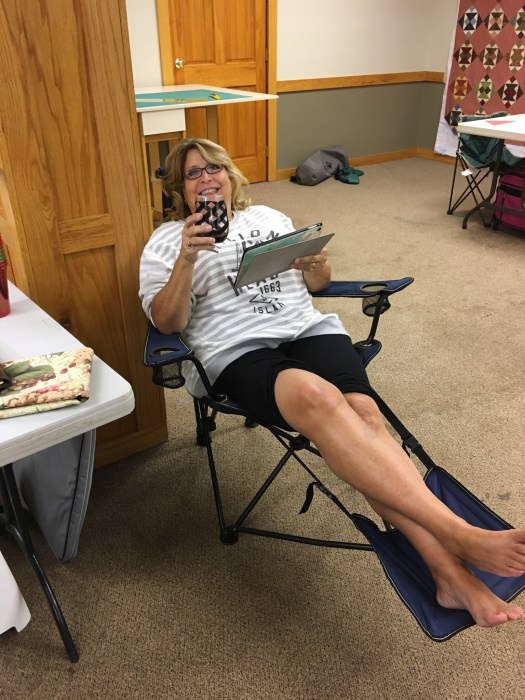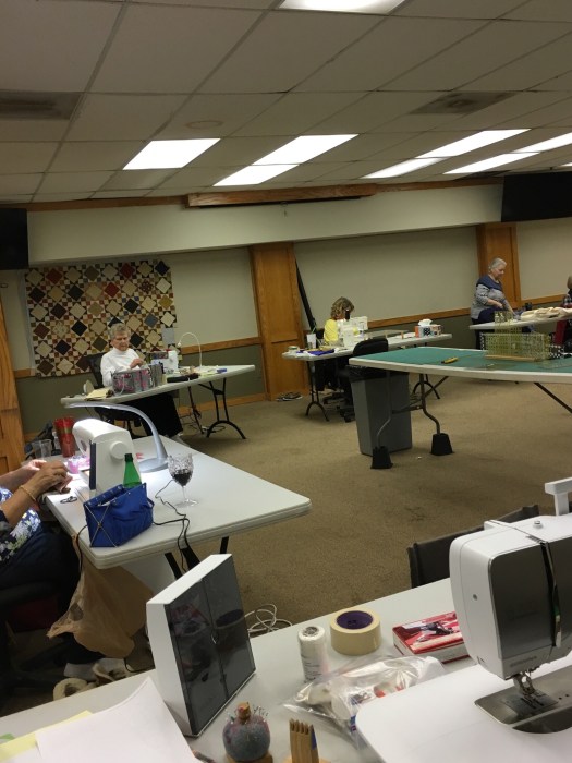 When we first started retreating we all quilted. Now it’s fun to look around the room and see the other directions some of the creativity has gone.