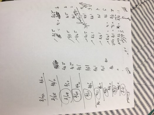 Libby enjoys making complicated quilts that require her to do this before cutting fabric. Scary sitting next to her, too.