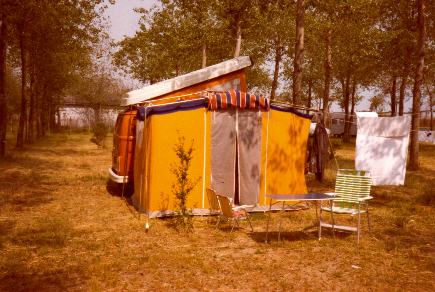 My dad never wanted to stop for meals or potty breaks. Any meal in the car was peanut butter and jelly brought from home in used brown bags. Pee breaks were a stop on the side of the road, squatting in the weeds. Oh, how I hated that. I only remember one trip when we stopped and pulled into a little general store/Esso station somewhere in South Georgia for a break. We begged our parents to buy us bottles of Coke for 5 cents from the old freezer style vending machine. We were rarely allowed to get a soft drink and we were so tickled that I remember Cindi and I being struck with a case of the giggles. One of my favorite photos: